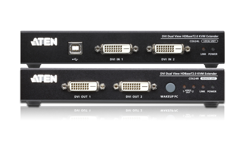 USB, DVI, КВМ-удлинитель c поддержкой Dual View и HDBaseT 2.0 (1920 x 1200 до 100 м)